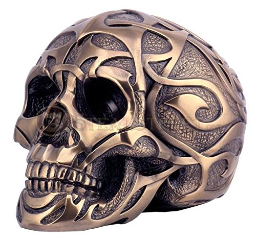 Top Collection Fierce Bold Bronzed Tribal Skull Figurine Statue Sculpture Human Skull Replica