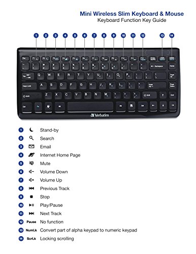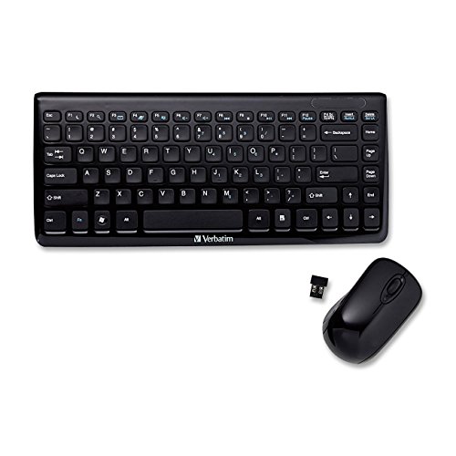 Save even more room on your actual desktop with Verbatim’s Mini Wireless Slim Keyboard & Mouse. Designed with a piano black finish, this keyboard features low profile keys that provide a crisp, responsive feel when typing. Boasting a laptop-style keyboard configuration, this ultra-slim, ultra-narrow keyboard offers 2.4 Ghz wireless communication – eliminating delays between what you type and what you see on-screen. The included media console allows control of your favorite tunes directly from the keyboard. With its slim design, the freedom of a cordless interface, and a wireless mouse, this keyboard is a perfect space-saver. Contents: Keyboard, Mouse, Nano Receiver, 4 x AAA Batteries, Software CD, Quick Start Guide