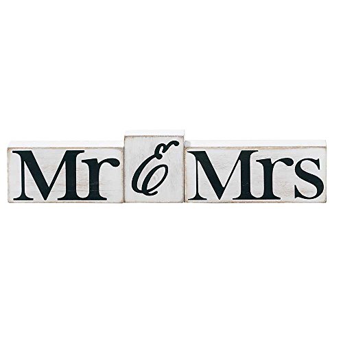 Mr. and Mrs. Distressed White 3 x 5 Wood Table Top Sign Plaque