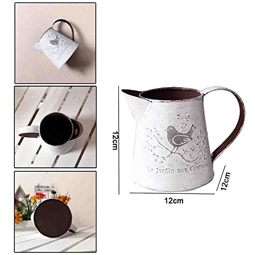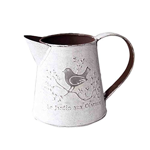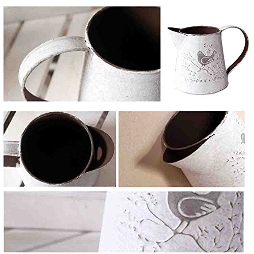 Watering Honey French Style Rustic White Shabby Chic Mini Metal Pitcher Vase Primitive Jug Vase For Home Cafe Decor
