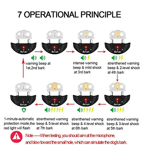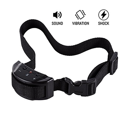 Color:Black The Anti-Bark Collar stops barking by progressively increasing sound and shock which is controlled by a microprocessor distinguishing your dog's bark from other environmental noises and automatically delivers sound and shock after each bark, most of the pets will quickly understand the new sensation is telling her to be quiet. It can be adjusted to control the sensitivity of the voice, according to the size of dogs barking. This technique of progressively increasing sound and shock is not only more humane, it is more effective in breaking the barking habit than conventional shocking bark control collars. How to it works: At the first bark, the Collar applies a short warning tone . if a second bark occurs within thirty seconds, a more intense tone is sounded. From the third bark, a more intense tone is sounded along with a short , mild shock.? This pattern is repeated through 7 correction levels. The first two levels are only with progressively warning tone.? If your dog continues to bark through the rest five levels, the more intense sound and shock are applies until your dog stops for thirty seconds, and then it will automatically resets to the first "tone only" level of correction. If the continuous stimulus reaches the 7 levels, then the Collar will stop working for 1 minutes to protect the dog. The use of the warning tone sets up a pattern that your dog will quickly learn is caused by its own barking. It takes time to break bad habits. When your dog forgets and barks again, the warning tone reminds your dog without immediately applying painful stimulus. Package included: 1 x No bark receiver 1 x Adjustable Nylon Collar 1 x Test Light 2 x Long shock electrodes 2 x Short shock electrodes 1 x English Manual 0 |