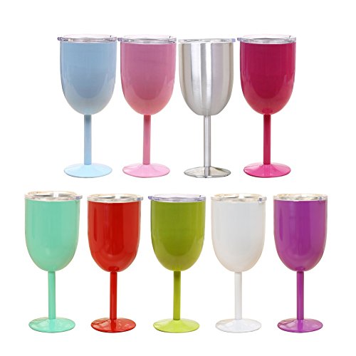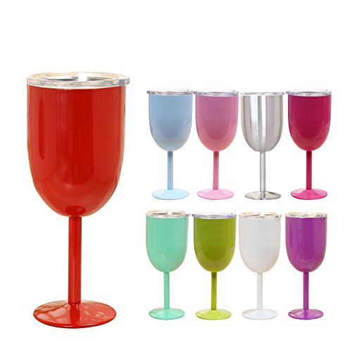-. Feature : Beautifully crafted stainless steel wine glass:Order in your favorite color or collect all 8 colors to match with any occasion or outfit. You will LOVE to use and show off your new stylish, fun, trendy, sassy and chic wine glass! / A detachable, BPA-free lid with rubber gasket provides a strong, leak-resistant seal that stays on even when the cup accidentally takes a tumble. The clear lid allows for visibility of the steel wine set¡¯s contents and has an easy-slide window for drinking while also keeping bugs and debris out of drinks. A thumb-push lip makes lid removal easy. / Keep hot or cold:COLD UP TO 24 HOURS / HOT UP TO 6 HOURS.Vacuum sealds double wall construction keep cold drinks cold & hot drinks hot.Insulated stainless steel wine glasses or coctail glasses with drink through spill resistant lid. / Reusable and Recyclable.Extremely durable and will not rust, oder & stain resistant, BPA free. You can use this product happily knowing it's environmental friendly. / Makes the absolute perfect gift:Whether you are shopping for birthday, bridal shower, wedding gift, bridal party, bachelorette party, retirement or Christmas, this colored stainless steel wine glass will make the perfect gift for ANY occasion!