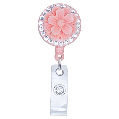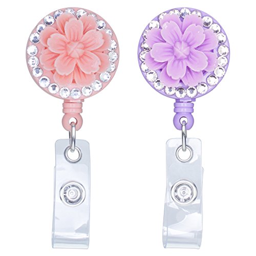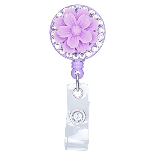 Soleebee Retractable Resin Rhinestones Sakura I.D Card / Badge Reel / Badge Holder with Belt Clip (Orange/Purple)