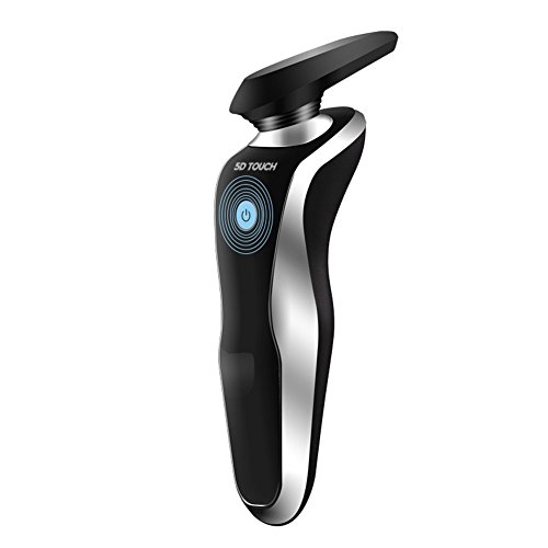 HaloVa Electric Razor, 3D Rotary Floating Blades, USB Rechargeable Men's Shaver, Shave Wet and Dry, Whole Body Washable 4 in 1 with Nose Trimmer, Sidebums Razor, Facial Brush, Black