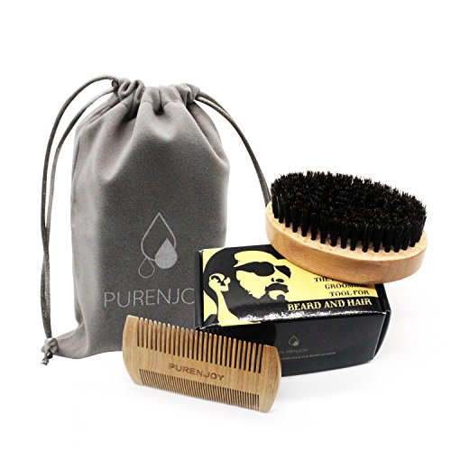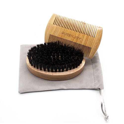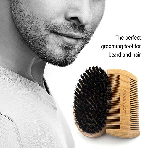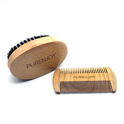 Beard Brush and Comb Set for Men - Boar Bristles and Natural Wooden Material - PURENJOY Perfect Grooming Tool for Mustache & Hair