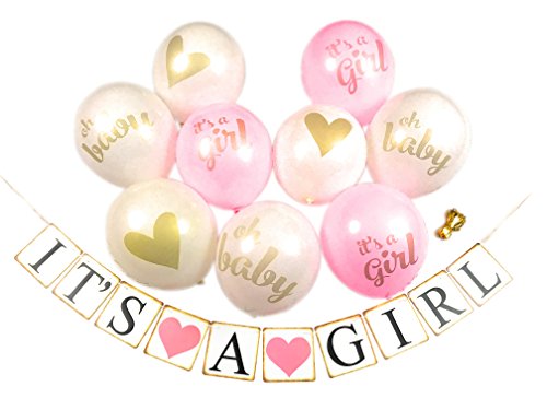Studio : YouParty Publisher : YouParty Binding : Health and Beauty Product Description ? Make the Baby Shower Beautiful Great-looking decorations don't have to take a lot of time and money to do! With our set of a pre-strung banner plus 9 balloons, your baby shower will look amazing and you're not breaking the bank. ? Everything You Need Included! 9x thick card stock letters ("It's ♡ A ♡ Girl") Pre-strung ribbon for the banner [10 feet long] 9x gold print balloons with the following colors: 3x-White "Oh Baby", 3x-Pink "It's A Girl", 3x-White Gold Heart 9x pre-cut 6ft gold ribbon to tie on balloons