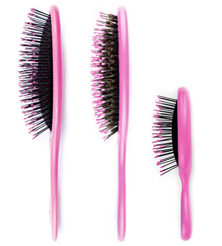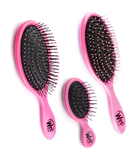 Enjoy three different variations of the Wet Brush! The Wet Brush Original Detangler along with it's cute little sidekick, the Squirt and the Wet Brush Shine. All 3 brushes feature our exclusive IntelliFlex(R) bristles! IntelliFlex bristles are firm on one stroke but give on the next. Brush out tangles effortlessly, with no more pulling, tugging or pain. The Wet Brush Shine is made with a combination of Mongolian Boar(TM) bristles with Intelliflex(R) bristles to distribute hairs natural oils, leaving hair smooth and shiny. The result: healthier hair, with no tangles, no split ends or hair loss.Feature