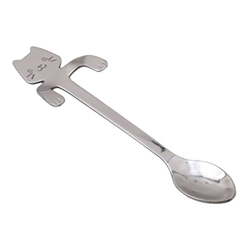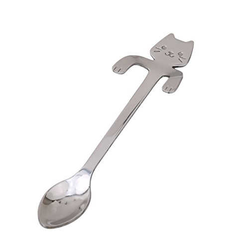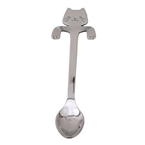 (H_US000)/Kitchen Dining/Cook's Tools Gadgets/DIRECT FROM USA/HS Stainless Steel Cute Cat Spoons Coffee Spoon Dessert spoon for Coffee Tea 1pc (Silver)