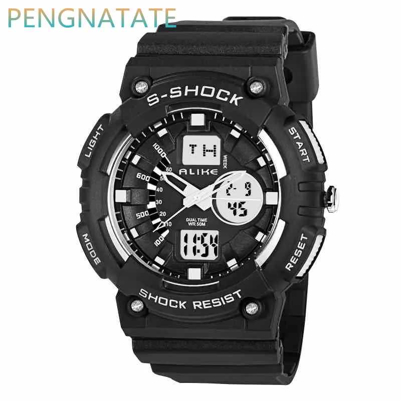 남성 패션 똑같아서 스포츠 브랜드 시계 남자 충격 방지 석영 알람 손목 야외 군사 LED 캐주얼 시계 PENGNATATE 설명: 포장 상세