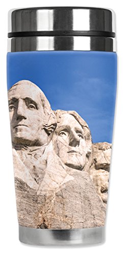 Mugzie 988-MAX "Mount Rushmore Blue Sky" Stainless Steel Travel Mug with Insulated Wetsuit Cover, 20 oz, Black