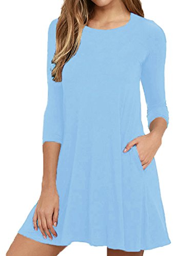 *VIISHOW Women's Basic 3/4 Sleeve Pocket Casual Loose T-Shirt Dress