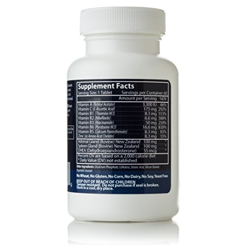 With specially selected vitamins, zinc, DHEA and New Zealand bovine freeze-dried tissues, Adrenal Complex by Herbaila is designed to provide nutritional support for adrenal gland function and help reduce stress and tension. The Adrenal Glands produce these hormones necessary for optimal health and well-being: Cortisol - Helps regulate metabolism and immune function. Corticosterone - Works with cortisol to regulate the immune response. Aldosterone - Helps control blood pressure. Adrenaline - Helps the body react to stress.