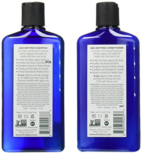 This bundle includes one Andalou Naturals Argan Oil Stem Cells Age Defying Shampoo and one Andalou Naturals Argan Oil Stem Cells Age Defying Conditioner with aloe vera juice and anti-aging / age defying cream, making it the perfect natural shampoo and conditioner set for more youthful hair