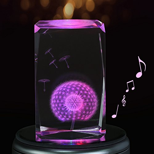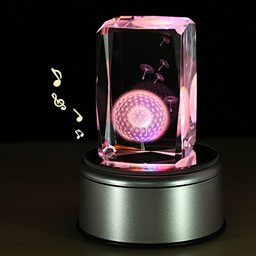 Title : LIWUYOU Music Box for Girls Engraving with Dandelion Flower Colorful Light Crystal Musical Boxes, No Text, Music base