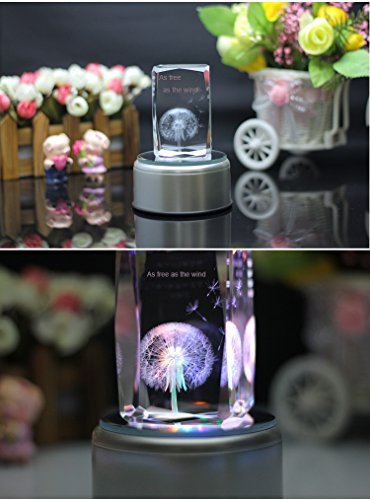 Feature : Music Base default tracks: Castle in the Sky, Canon, rain mark, My Heart Will Go On, Yesterday Once More, Tomorrow I want to marry you, See the sea town, Romeo and Juliet etc. (18 non-replaceable absolute music). / A never fade Dandelion with its seeds.The wind puffed away the seeds of the dandelion,and as free as the wind .Storage in crystal, symbolize your yearning for hope,dream or freedom. / K9 Crystal: Pure and luxury. Advanced laser inside carving tech insures the amazing 3D effects / Automatically rotating music box base with LED colorful lights: Gradient red, yellow, blue and green lights shine in the precious crystal rose when the music is flowing in the air. / The best birthday gift for your friends ,family ,lovers , let Crystal witness your true love.