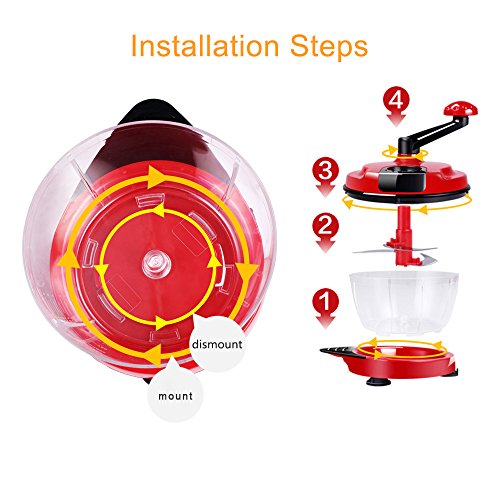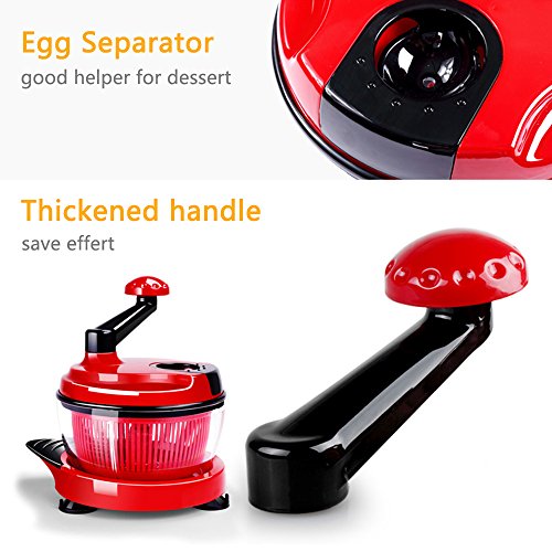 LOHOME Hand-Powered Food Chopper - Manual Food Processor / Baby Complementary Vegetable Chopper / Meat Grinder with Free Tools Blender + Salad Spinner + Egg Separator + Ceramic Peeler (Red)