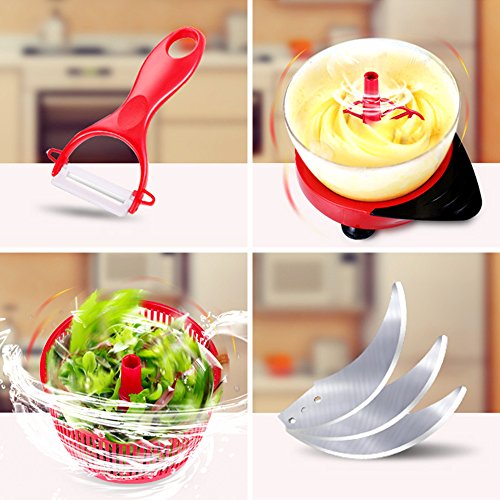 - FREE SALAD SPINNER AND SHARP CERAMIC PEELER: Salad spinner help you dry the water above the vegetable leaf, quickly make a plate of fresh vegetable salad, no waiting needed for delicous food. What's more, it is a good helper to get rid of annoying sand of the seafood for seafood lover. Free charge peeler adopt advance nano-ceramics, keep a long time sharp and anti-rust.