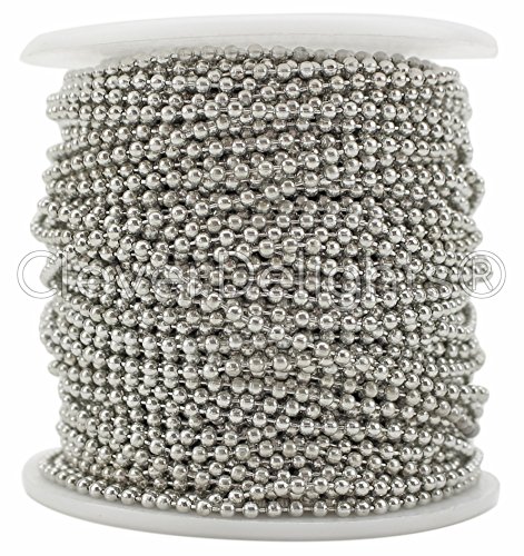 CleverDelights Ball Chain Spool - 30 Feet - 2.0mm Ball - Antique Silver (Platinum) Color - 10 Meters