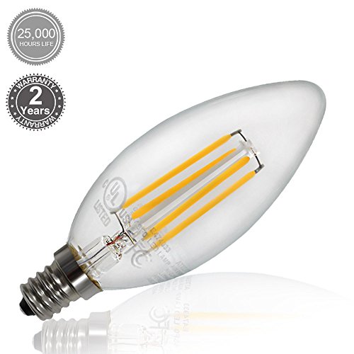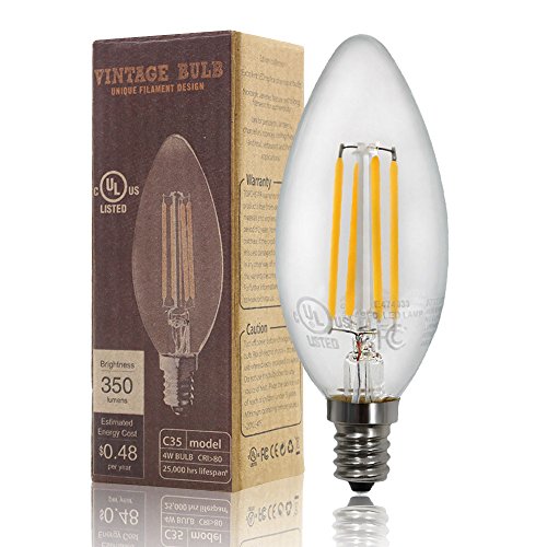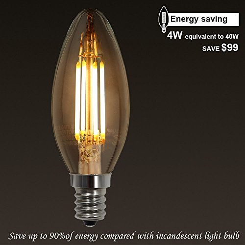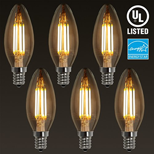 6-PACK LED Filament Candelabra E12 Bulb, ENERGY STAR, UL-listed Vintage Candle Light, 2700K Soft White, 4W (40W Incandescent Equiv.), 300° Beam Angle for Chandelier, Wall Sconces, Pendant Lighting