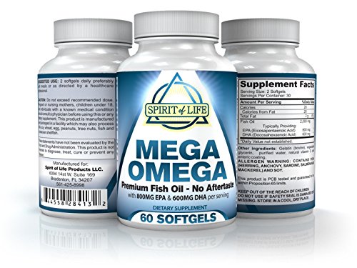 -. Title : Mega Omega Premium Fish Oil, No Burp, No Fishy Aftertaste, 800mg EPA & 600mg DHA Enteric Coated. Molecular Distillation.