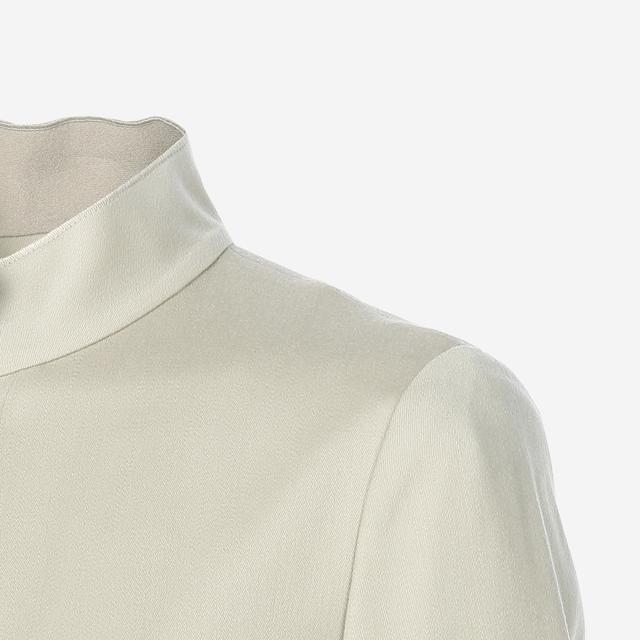 차이나넥 디테일과 뒤쪽의 러플 주름으로 포인트를 준 아이템입니다.