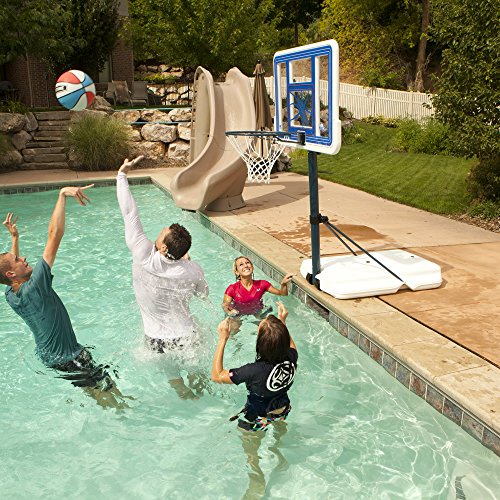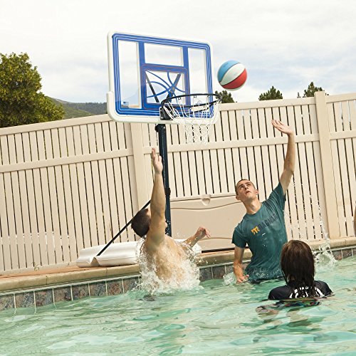 -. Binding : Sports -. Brand : Lifetime -. Color : Blue -. EAN : 0754744205572 -. Feature : 44" Shatterproof Fusion backboard is constructed of High Density Polyethylene for superior strength and durability / All-weather resistant, designed to withstand the harshest elements / 2-piece, 3-inch telescoping pole adjusts from 4-1/2 to 7 feet tall / 27 Gallon base provides stability and portability; Can be filled with water or sand / Backed by a 5-year limited manufacturer warranty -. Label : Lifetime -. Manufacturer : Lifetime -. Model : 1306 -. MPN : 1306 -. NumberOfItems : 1 -. PackageQuantity : 1 -. PartNumber : 1306 -. ProductGroup : Sports -. ProductTypeName : SPORTING_GOODS -. Publisher : Lifetime -. Size : One Size -. Studio : Lifetime -. Title : Lifetime 1306 Pool Side Height Adjustable Portable Basketball System, 44 Inch Backboard -. UPC : 081483013060 -. Warranty : 5-Year Limited Manufacturer Warranty.