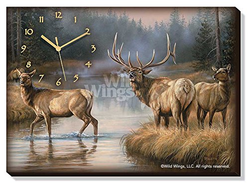 -. Title : Autumn Mist Elk Wrapped Canvas Clock by Rosemary Millette