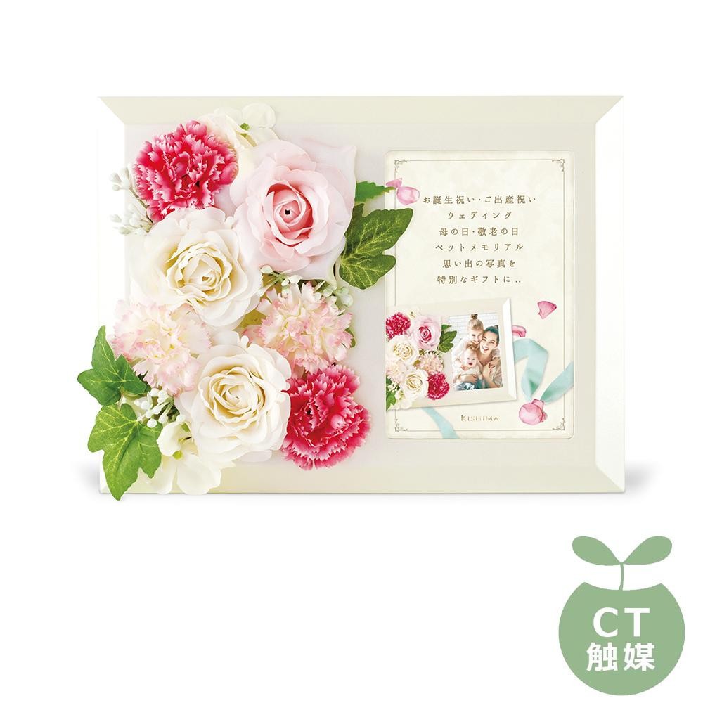 CT触媒加工消臭アーティフィシャルフラワーを贅沢に使用したフォトフレーム。様々なギフトシーンを華やかに彩ります。