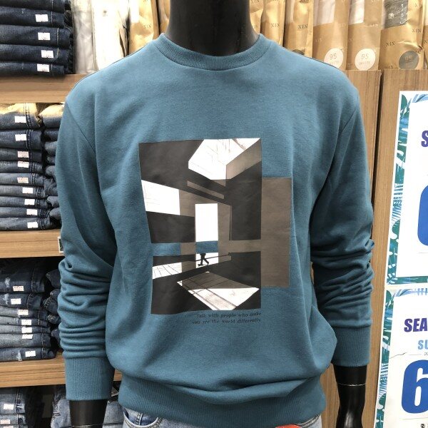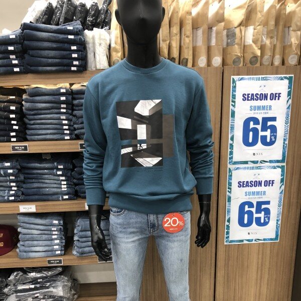 중앙에 가하학적인 느낌을 모티브로 한 전사프린트를 준 스타일리쉬한 느낌의 티셔츠