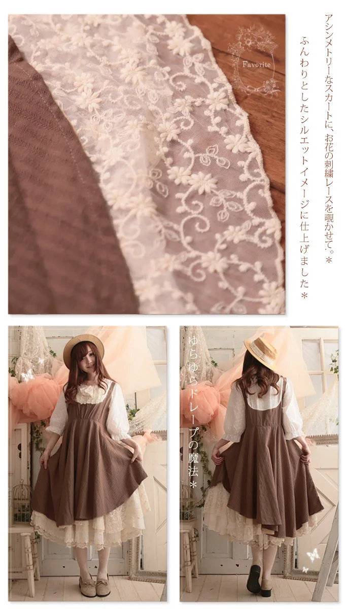 森ガールカワイイ無地コーデュロイレース刺繍ロングスカートロリータスタイル半ばふくらはぎマキシカジュアルスカートサイア服女性のため