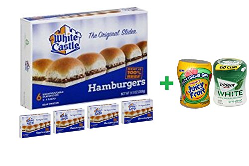-. Title : White Castle Frozen Food Hamburger Microwaveable - 9.5 Oz( 5 PACK ) + Fruity Chews Gum Watermelon 1/60 Count + Trident Go Cup Spearmint 1/60 Count
