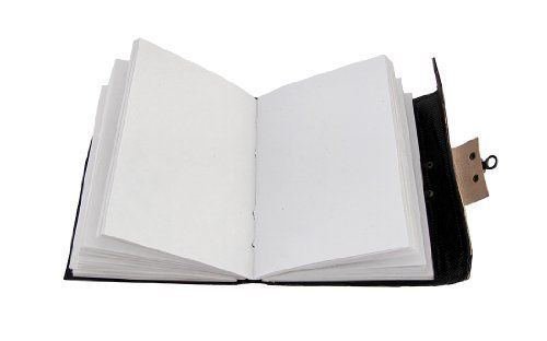 - MEASUREMENT: Approximately 7 by 5 Inches. BENEFITS: Easily fits in a purse or travel bag. FEATURES: Durable leather cover, front face also covers with a brass clasp. PAGES: Approximately 240 acid free, recycled biomass pages.