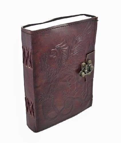 Dios Embossed Gryphon Leather Blank Journal, Leather Journal Blank Pages with Brass Clasp 5 by7 inches.