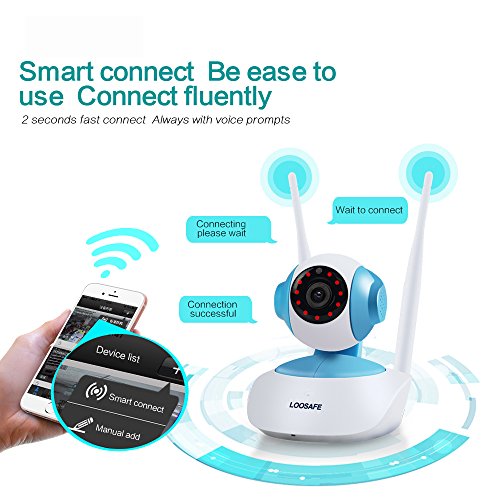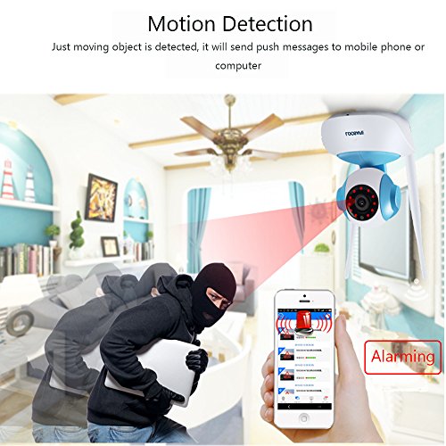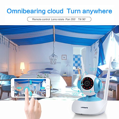 -. Feature : Fast Plug & Play Technology:No need Complicated Internet Cable or Setting,Save your Cost and Time;Remote Viewing Live Video:Accessing Live Recording Remotely from IPhone,Android,iPad ,Computer Anywhere / 5db dual-antenna, wireless signal transmission stablly, the phenomenon of connection dropping does not appear, Smoother pictures, watching the family′s conditions anytime anywhere / 11pcs infrared night vision lights,high-definition night vision effective is more clearer, the monitor screen also able to show clear in the evening, night vision distance up to 32 feet / Rotation Tilt head, horizontal 355 °, vertical 120 °, when viewed remotely using a mobile phone, you can freely slide the screen, no dead angle monitoring, you can safely use it / 960P(1280*960)HD resolution and dual voice intercom feature allows you to clearly see the family and contact them, one-year warranty service allows you worry-free sale, easy to use