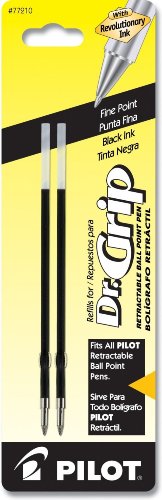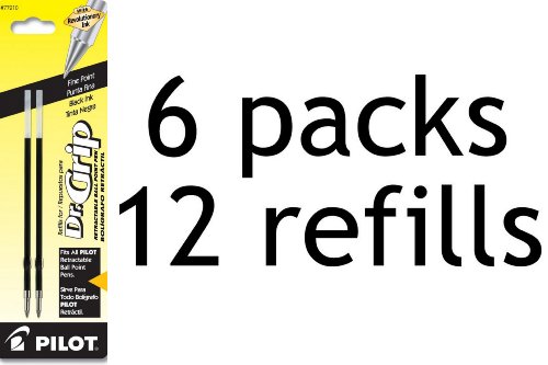 Pilot Dr. Grip Ballpoint Ink Refill, 2-Refills for Retractable Pens, Fine Point, 6-Pack, Black Ink (77210)