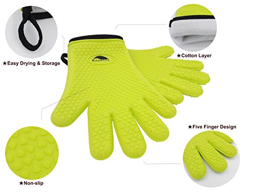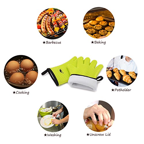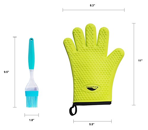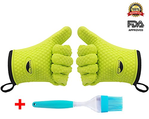Funwhale Heat Resistant Silicone Oven Gloves (Inner Cotton Fabric) for BBQ,Kitchen,Baking,Cooking,Grilling, Frying,Smoking& Potholder (Free Silicone Basting Brush as Bonus) -Protection for Your Hands