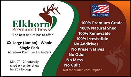 -. Title : Giant, Whole, Single Pack - XX Large, Jumbo, Grade A Premium Elk Antler Chew for 75+ lb dogs – Naturally shed from wild elk – No Mess, No Odor – Made in the USA