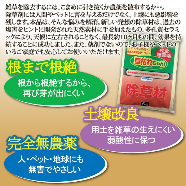 【商品名】草枯れちゃん/完全無農薬除草材 【5kg】 日本製 非農耕地専用 〔ガーデニング 玄関回り 墓地〕