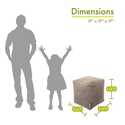 Add style and color to your living room or bedroom with Majestic Home Goods new Villa collection. This Pearl Cube is perfect for use as a footstool, side table or as extra seating for guests. Woven from 100% polyester Micro-velvet, these cube ottomans are durable yet comfortable. The beanbags are eco-friendly and feature a zippered slipcover. Spot clean slipcover with mild detergent and hang dry. Do not wash insert.Feature