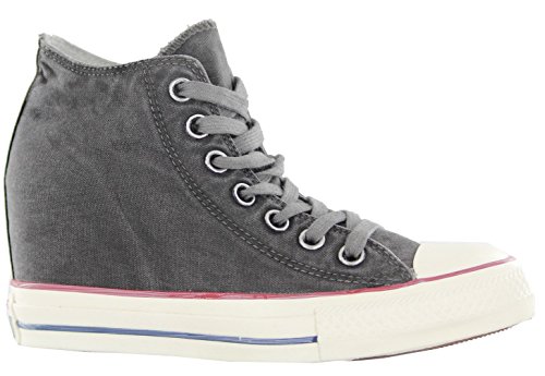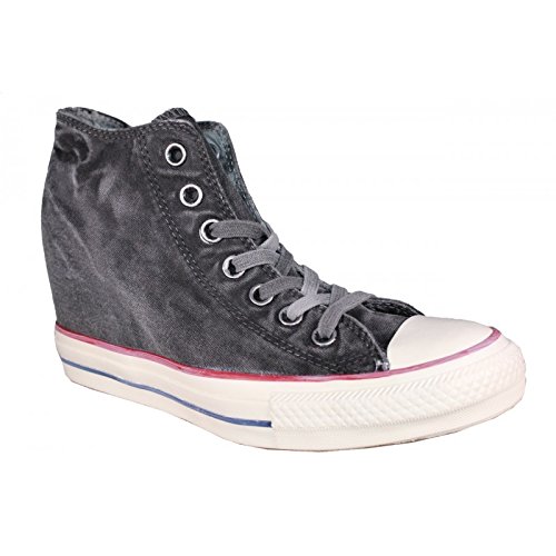 A washed and weathered finish adds instant lived-in appeal to a sporty All-American sneaker fashioned with a leg-lengthening hidden wedge.