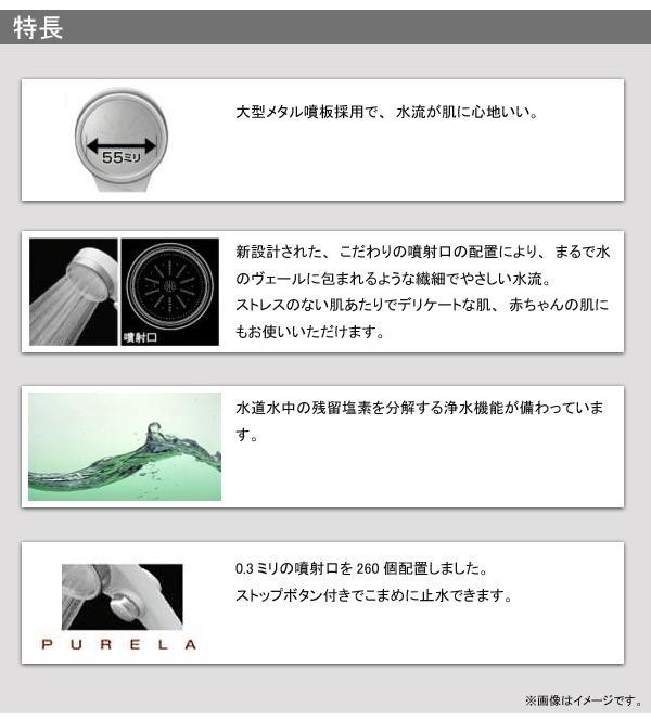 | カートリッジの浄水機能により塩素除去でシャワーの水が髪やお肌にやさしい水になります。大型メタル噴板でなめらかで勢いのある、心地いい水流を生み出します。さらにこまめに止水できる手元ストップボタンで節水効果!! |