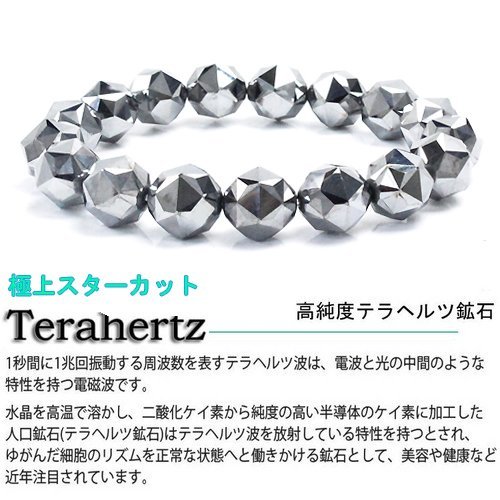 원본상품명: 高純度テラヘルツ?石 高品質極上 スタ?カット ビ?ズ 美肌スト?ン きらきら ブレスレット 【玉約12mm×17粒】 1本
