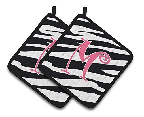 Caroline's Treasures Monogram Initial M Zebra Stripe & Pink Pair of Pot Holders CJ1037-MPTHD, 7.5HX7.5W, Multicolor