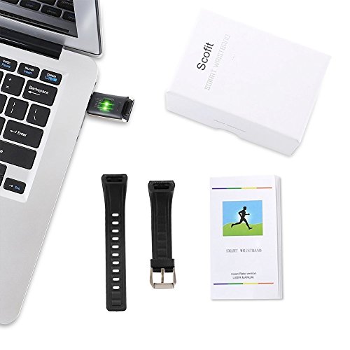 Scofit Waterproof Fitness Heart Rate Wristband is designed for setting fitness goals movement pattern. Almight Functions: Step Counter, Call&Text Reminder, Incoming Calls Show, Calories&Sleep Tracking, Find Your Phone, Camera Remote Control, Sedentary Reminder, Social media message Reminder, etc. Muti-Sport Tracking: Use Connected GPS during run or bicycle mode to see real-time stats like pace and distance on the app. 4 indoor sports tracking: rope skipping, jumping jack,sit-up, treadmill. Easy to Charge: Host comes with a standard USB port.?So it is available for charging with computer and battery power without any other charging components. IP 67 waterproof: Swim-proof, Shower-proof, Rain-proof, etc. Music Control: Tap screen to adjust volume, music play, pause, or switch to last or next song.? Sleep Tracking: Automatically tracks?your sleep and set a silent alarm to wake better and get your best rest. Notification remind: Clock alarm alert, call&text alert, anti-lost alert sedentary alert with a silent vibration. Sync wirelessly:?Support 200 iPhone and Android devices, such as iPhone 7/7 Plus/6s/6/6Plus/5/5S/SE, Huawei Mate 7/P9, Samsung Note/Galaxy, etc. FAQ: Q: How to connect and set your time? 1)Download the app "Smart wristband" required from Apple store or Google Play store. 2)Turn on phone bluetooth, go to the App=>>Setting=>>My wristband, then search and pair the device with your phone. 3)Once it paired correctly, the wristband vibrates. TIME AND DATE on the band will be auto synchronized with phone's. Q: About charging and battery life. Please charge it on USB plug, charge time: 1-2 hours.? We recommend charging your device every few days to ensure you are always tracking. ?Package Includes: 1 x ScoFit Fitness Tracker 1 x User Manual ? 0 |