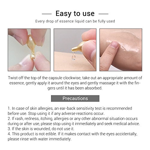 Twist off the top of the capsule clockwise,take out an appropriate amount of essence, gently apply it around the eyes and gentle massage it with the fingers until it has been absorbed.