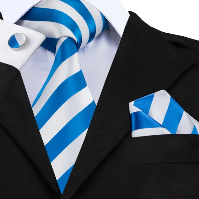| [해외]2017 남성 넥타이 정장 패션 스트라이프 넥타이 세트 청이 화이트 색상 새로운 브랜드 100% 실크 넥타이 도매 aliexpress C-415 |