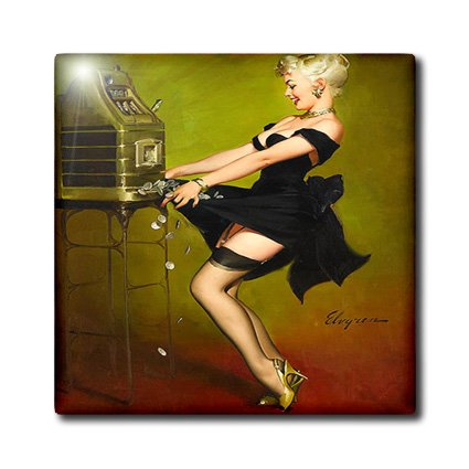 3dRose ct_179583_2 Image of Famous Elvgren Pinup Painting Pot Luck At Slot Machine Ceramic Tile, 6-Inch