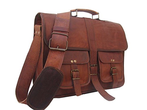 -. Title : Leather Laptop Messenger Retro Bag Vintage Office Briefcase College Bag 16 Inch