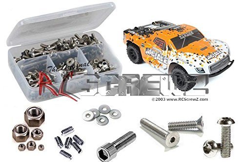 Studio : RCScrewZ Publisher : RCScrewZ Binding : Toy Product Description Stainless Steel Screw Kit for the Mojave 1/10th Short Course......RCScrewZ Stainless Screw Kits are 100% complete. Your new kit will include everything needed to do a full conversion and more. Stainless Steel Screw Kits are far superior to the screws that come stock with your RC. Our kits are made with the best stainless steel money can buy. No more bent, rusted, or corroded screws. Never worry about stripped heads again. You will not find a better screw kit for your RC at any price and we Guarantee it. If for any reason your not 100% satisfied with your kit, return it and we will send you a full refund for the price of the kit. All RCScrewZ Kits include: **All socket screws Extras, **Button Screws Extras, **Flat Head Screws Extras, **Set Screws Extras, **Nuts Extras, **Washers Extras, **Bondhus Short Arm Hex Wrenches All Sizes, **Quality Reusable plastic pit case. Come visit us direct at RCScrewZ and browse our inventory of over 4000 screw/bearing kits!!!! 0