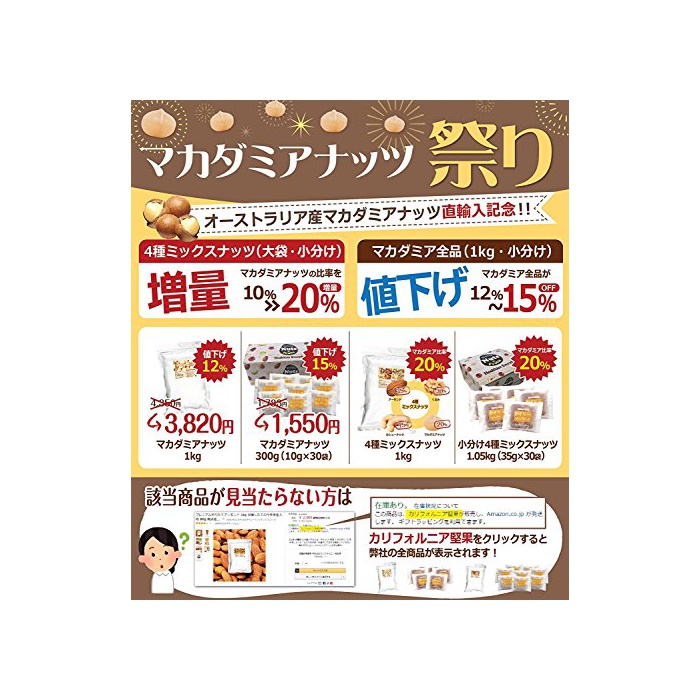 원본상품명: 小分け 生 マカダミアナッツ ハフ 300g (10gx30袋) オストラリア産 産地直輸入 無 無添加 窒素充